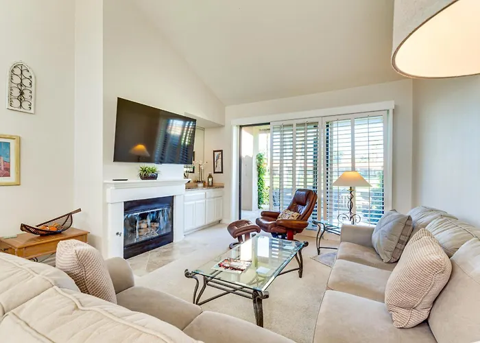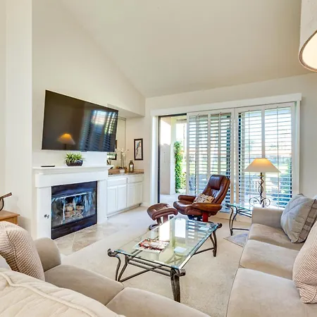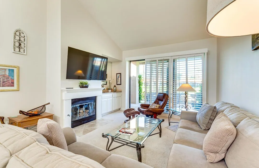 Mtn View And Fairway-Facing Patio Palm Desert Condo has an access to a fully furnished kitchen with an oven and a dishwasher. Thanks to a Jacuzzi provided, guests can enjoy a relaxing stay. To keep up with sports routine, access to a golf club is provided. Also, the presence of an outdoor swimming pool guarantees a relaxing stay.